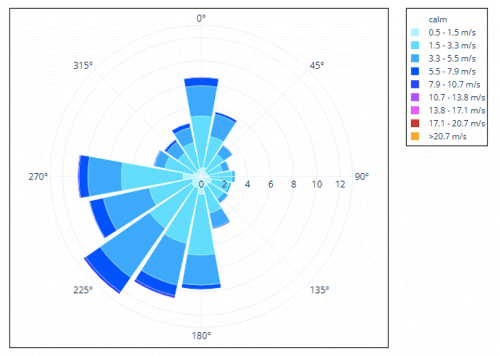 Étude météorologique du site : rose des vents et caractérisation du confort